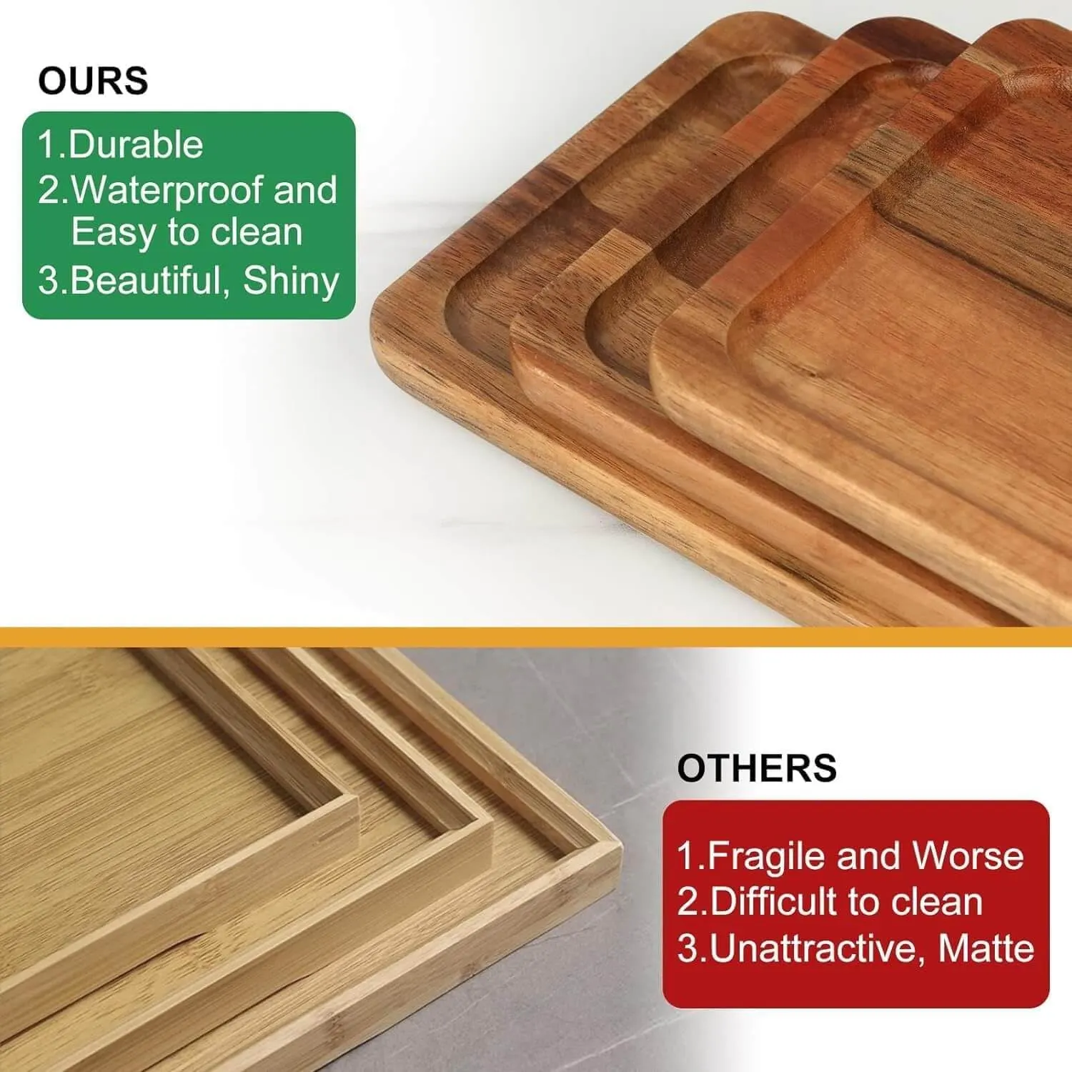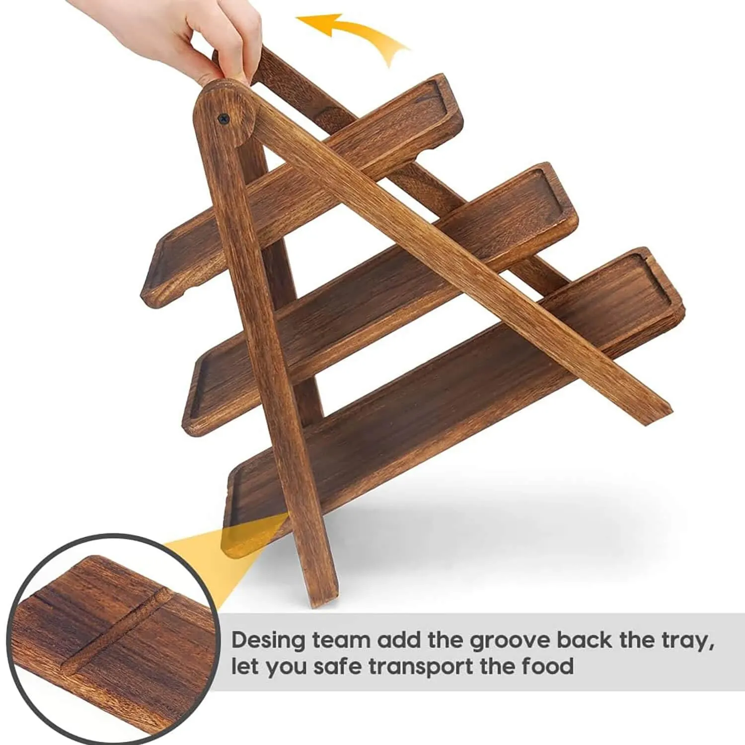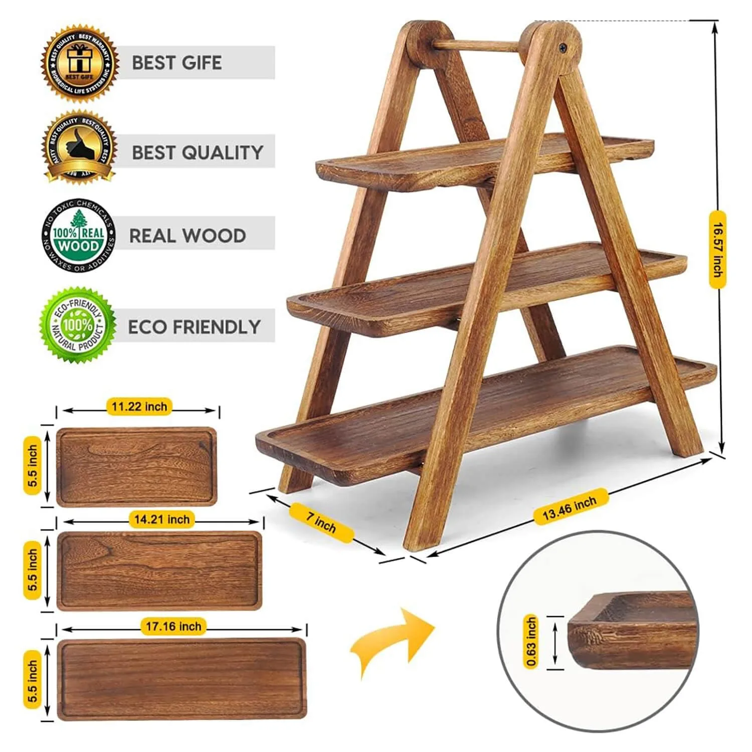 Designed for both beauty and practicality, our 3 Tier Wood Serving Tray is easy to assemble and disassemble for convenient storage. The sturdy construction ensures stability, even when loaded with your favorite goodies. We’ve added grooves under each plate to securely hold the 3-layer tray in place on the ladder structure, preventing wobbling and ensuring a stable and secure display. Cleaning is a breeze – simply wash by hand with mild soap and cold water, then dry with a soft towel.