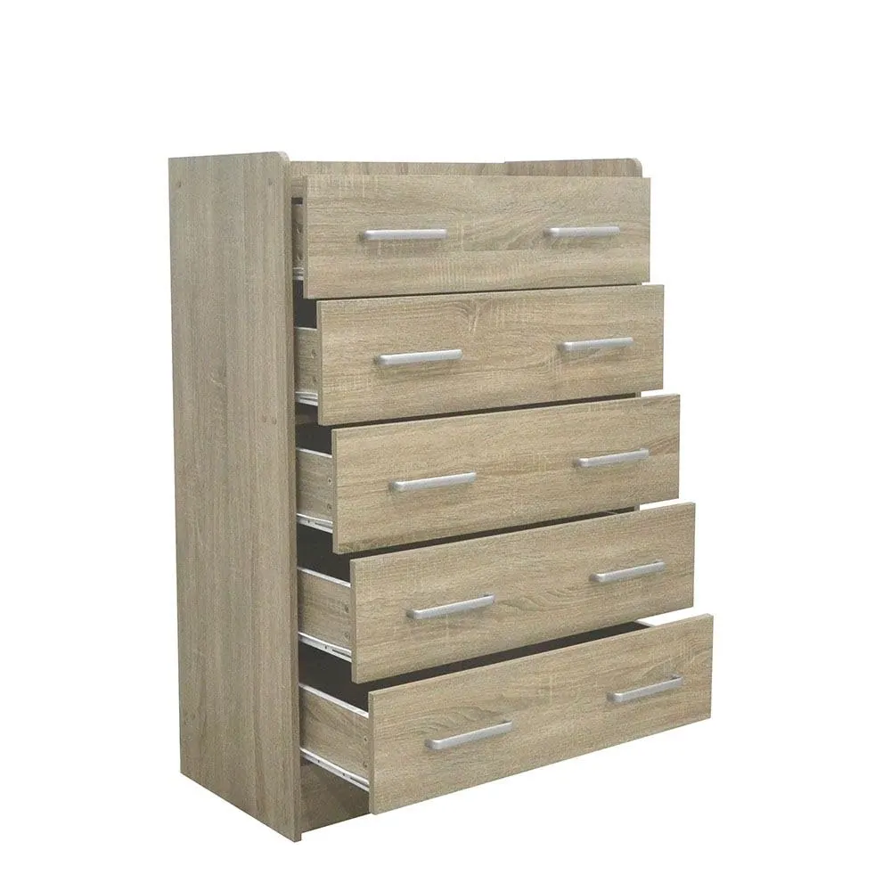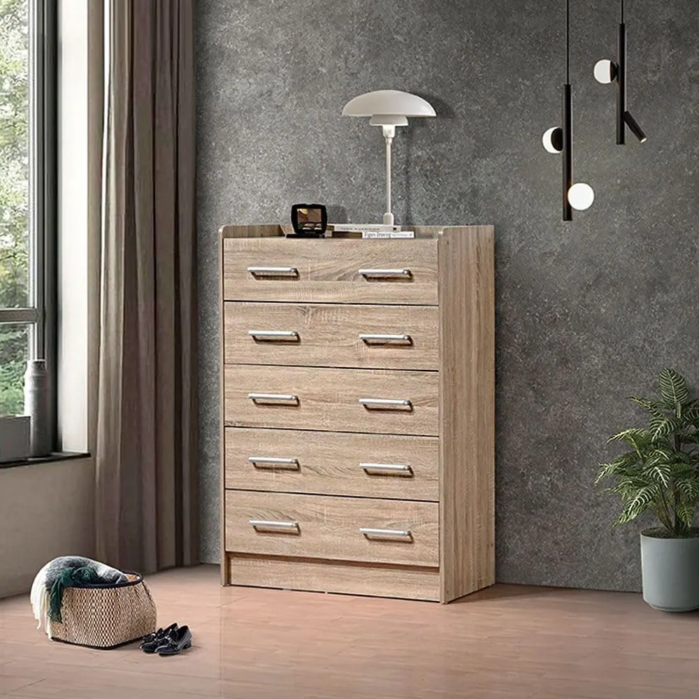 Upgrade your bedroom or living room with this stylish and functional 5-drawer chest. Crafted from high-quality wood, this storage organizer offers exceptional durability, stability, and a long service life, ensuring it will be a cherished piece of furniture for years to come. Its modern design adds a touch of elegance to any space, making your bedroom more gorgeous and sleek. This versatile cabinet can be used as a dresser, cabinet storage organizer, dressing rack, or simply a chest of drawers – explore the endless possibilities! The spacious drawers provide ample storage for your clothes, accessories, and other belongings, helping you keep your space neat and organized. Its dimensions (L 80 x W 40.5 x H 116 cm) make it suitable for various room sizes. We are confident in the quality of our products and offer a 2 Years* warranty on every storage cabinet, giving you complete peace of mind. If you have any questions, our customer support team is readily available to assist you through the ‘contact seller’ option on Amazon. Made with precision in Malaysia, this chest of drawers combines quality craftsmanship with modern design, creating a perfect addition to your home.