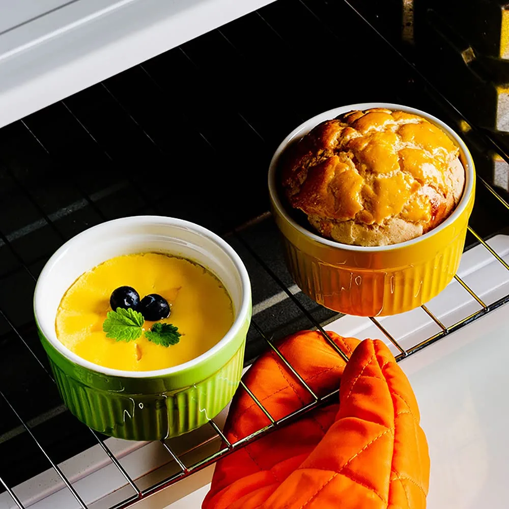 These ramekins are incredibly easy to clean thanks to their smooth, glazed surface. The non-stick glaze prevents food from clinging, making scrubbing a breeze. They are also dishwasher-safe, offering effortless cleanup after every meal. Designed with practicality in mind, these ramekins are stackable, saving valuable storage space in your kitchen cabinets.