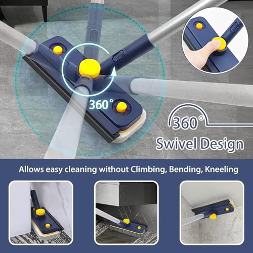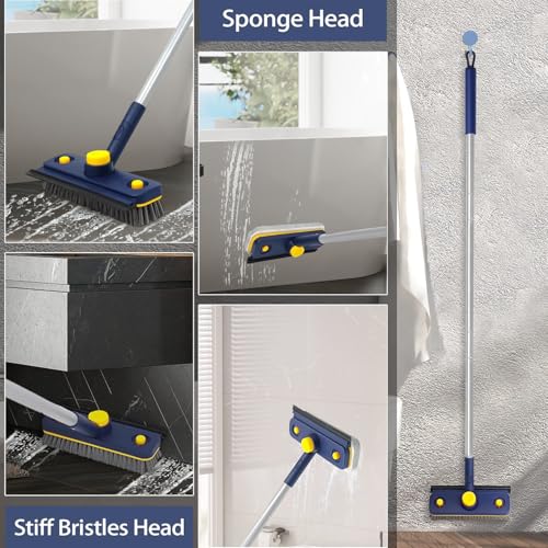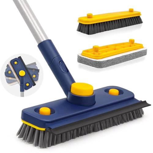 Equipped with a 360-degree rotating brush head that locks securely at any angle, the Angju scrubber reaches corners, edges, and narrow spaces effortlessly. It includes a hard-bristled brush perfect for scrubbing tough stains and a gentle sponge pad for delicate surfaces like bathtubs and tiles. This multi-functional tool efficiently cleans floors, showers, sinks, glass, patios, and garages with ease.