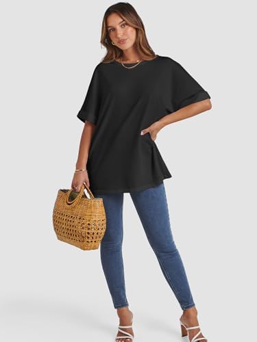 The ATHMILE Womens Oversized T Shirt offers a relaxed, loose fit perfect for casual summer days. Crafted with breathable fabric and a classic crewneck, this tee ensures maximum comfort and style while keeping you cool in warmer weather. Its short sleeves and Y2K-inspired design make it a trendy addition to any wardrobe.