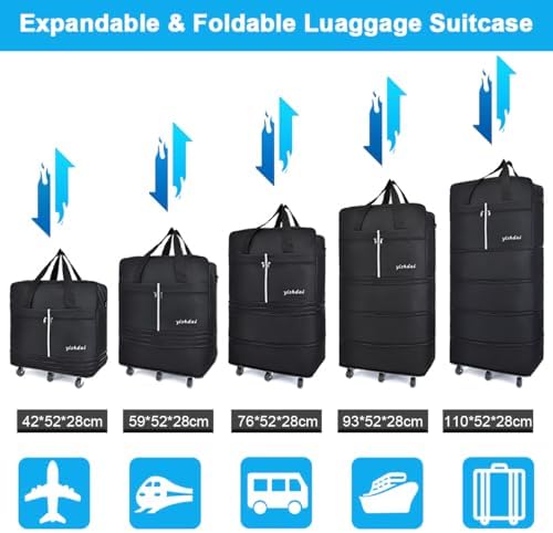 Designed with a simple and sleek look, this expandable rolling luggage is ideal for men, women, and students. Use it as a carry-on, weekender bag, camping gear holder, or even for moving house. Its robust design and large capacity enable stress-free packing and storage, making it an indispensable travel companion or everyday organizer that fits perfectly under beds or inside closets when folded.