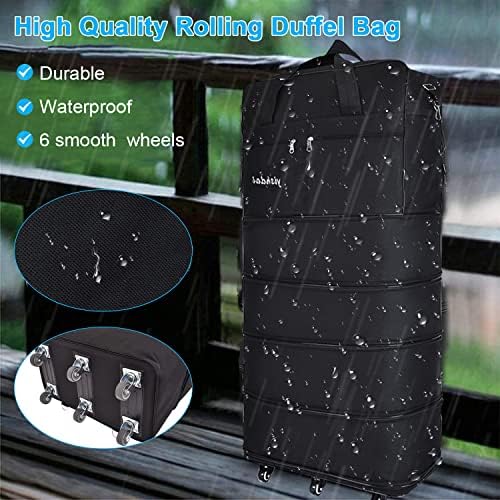 Constructed from premium oxford fabric, this lightweight wheeled duffel is both waterproof and tear-resistant, perfect for enduring rigorous travel conditions. Six noiseless, heavy-duty rolling wheels provide smooth and stable maneuvering, even on uneven surfaces, complemented by adjustable shoulder straps and multiple carrying options for maximum comfort. An extra-large back zipper pocket helps organize smaller essentials for quick access.