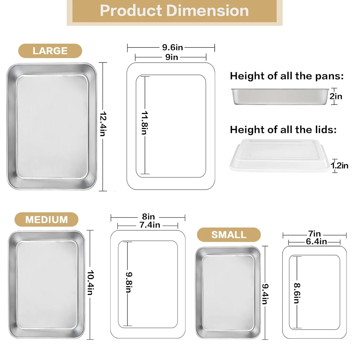 Baking Pan Set with Lids – Stainless Steel – 3 Piece