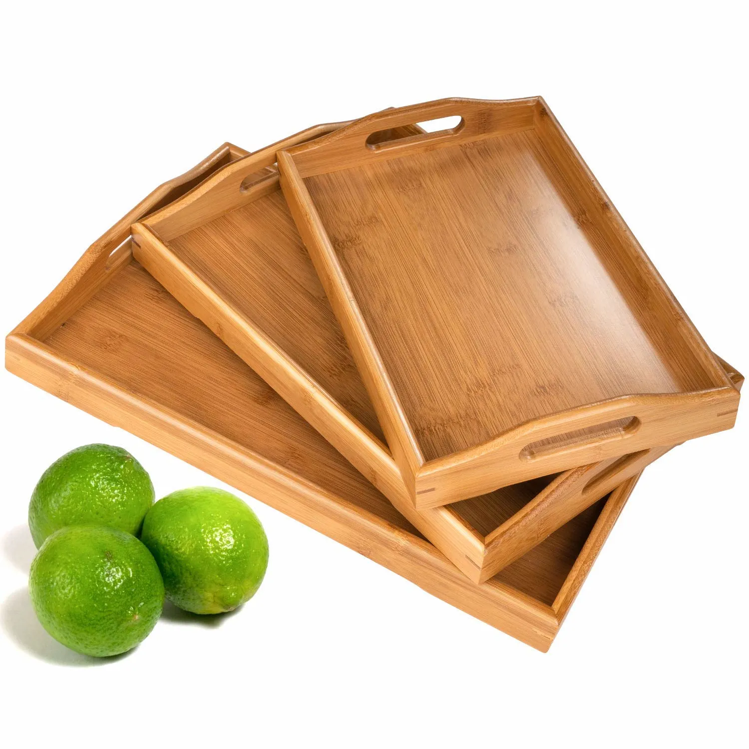 Elevate your serving experience with this beautiful and functional Bamboo Serving Tray Set. Crafted from food-grade natural bamboo, these trays are not only stylish but also incredibly durable and safe for your family. Enjoy peace of mind knowing that you’re using a non-toxic and harmless product. This environmentally conscious serving tray set is made from sustainable bamboo, contributing to a greener planet by helping control global warming. The natural bamboo material adds a touch of elegance to any setting, perfect for serving breakfast in bed, carrying drinks to the patio, or displaying appetizers at your next gathering. Designed with sturdy handles for easy and secure transport, this large wood tray set combines practicality with sophisticated design. Enjoy its versatility, use it as a decorative piece, or as a functional element for everyday serving. Customer satisfaction is our priority. We’re confident you’ll love this bamboo tray set, and if for any reason you’re not completely satisfied within the first 30 days, simply contact us for a perfect solution.