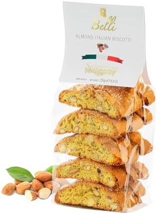 Experience the timeless tradition of Italy with Belli’s Italian Almond Biscotti, expertly crafted in Tuscany since 1958. These semi-soft, crunchy cantucci cookies are made with premium almonds and high-quality ingredients, capturing the rich flavors and textures of authentic Italian baked goods. Perfectly paired with your favorite coffee, tea, or even wine, they make every snack time a delightful and sophisticated moment.