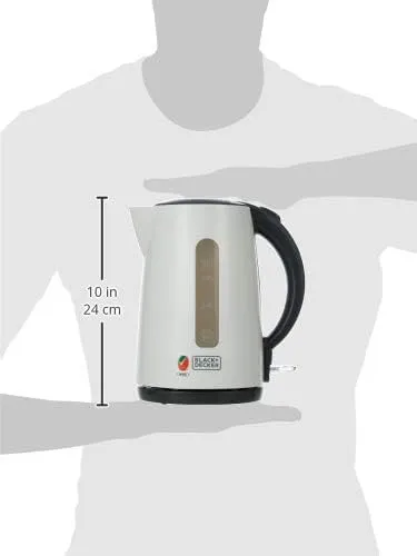 Experience rapid water boiling with the BLACK+DECKER 1.7-liter Cordless Electric Kettle, designed for convenience and safety in the modern kitchen. Featuring a powerful 2200W heating element, this kettle ensures quick boiling times, perfect for your morning tea, coffee, or instant meals. The lightweight, ergonomic design includes a 360° swivel base for easy lifting and pouring from any angle, making it ideal for both left and right-handed users. Safety is paramount, with built-in auto shut-off and boil-dry protection features that provide peace of mind during operation. The concealed stainless steel heating plate contributes to easier cleaning and longer product lifespan. Upgrade your kitchen with this essential white electric kettle, combining efficiency and reliable performance. ASIN: B07MVSTKCV.