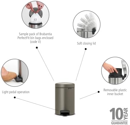 Whether you need a compact waste bin for your home or workspace, the Brabantia NewIcon combines functionality with style. The availability of matching Brabantia bin liners makes maintenance simple and mess-free. Plus, it comes with a 10-year guarantee, offering long-term reliability and peace of mind.