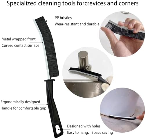 The CLJAQZW 7 Pc Crevice Cleaning Brush Set offers a comprehensive solution for a variety of tough cleaning tasks. Designed to tackle hard-to-reach spots like kitchen grease, bathroom gaps, tiles, faucets, and narrow crevices, this multi-purpose kit includes two crevice brushes, two squeegees, and three wire-bristle brushes with brass, stainless steel, and nylon bristles to handle stubborn dirt and grime effectively.