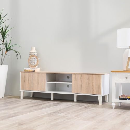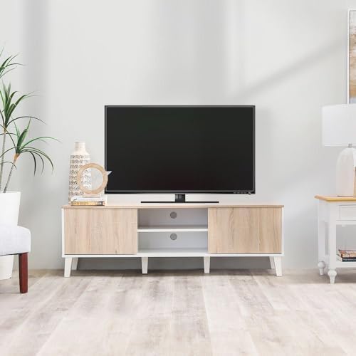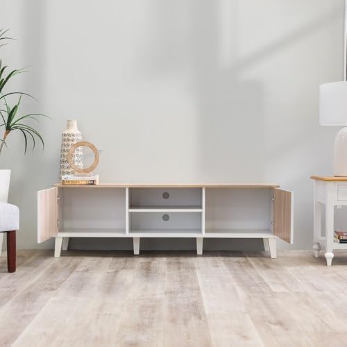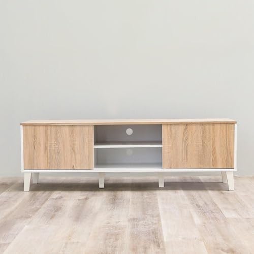 The Danube Home Juno TV Cabinet is designed to complement modern interiors while offering practical storage solutions. Perfectly sized to fit TVs up to 55 inch, this wooden TV stand blends aesthetics and functionality, making it an ideal centerpiece for your living room or bedroom. Its clean white and Sonoma oak finish adds a warm, contemporary look that suits various décor styles.