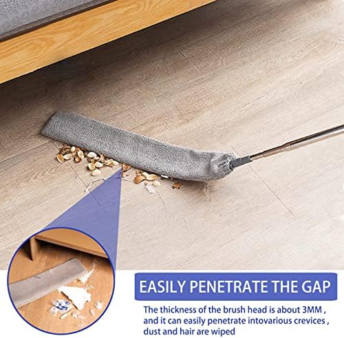 Equipped with soft microfiber cloths on both sides, this gap cleaner gently attracts and traps dust, preventing scratches on delicate surfaces. The kit includes three washable and reusable microfiber covers suitable for both wet and dry cleaning tasks. The removable handle and bendable cleaning head add convenience, while the looped tail design provides easy storage. Perfect for living rooms, kitchens, bathrooms, garages, and more, it’s your go-to tool for dusting under refrigerators, sofas, couches, and other hard-to-clean spots.