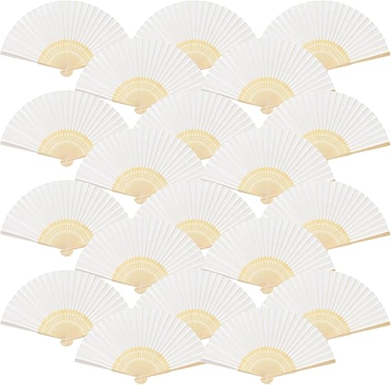 • Set includes 20 durable folding paper fans in a classic white color