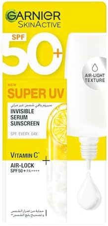 Garnier Skin Active Vitamin C Invisible Serum Sunscreen offers advanced SPF50+ PA++++ protection designed for both men and women. This lightweight formula combats UVA, UVB, and long UVA rays, ensuring 99% sun damage protection. Its innovative Airlock technology makes it invisible on the skin while maintaining a non-greasy, non-oily feel, perfect for daily use under makeup or alone.