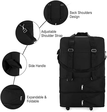 The Generic Royal Travel 36 inch Foldable Trolley Luggage Bag is designed for travelers who need ample storage without the bulk. With a generous 120L capacity and a 30kg load limit, this XXL duffel organizer easily accommodates clothing, gear, and essentials for long trips or large hauls. Its foldable design ensures convenient storage when not in use, making it an ideal choice for frequent flyers and road warriors.