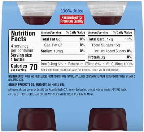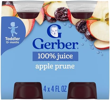 Carefully prepared with no added sugars or artificial flavors, Gerber Juice focuses on delivering natural taste and essential nutrients. The unique blend of apple and prune juice makes it a flavorful option that picky eaters will enjoy, perfect for mealtimes, snacks, or on the go.