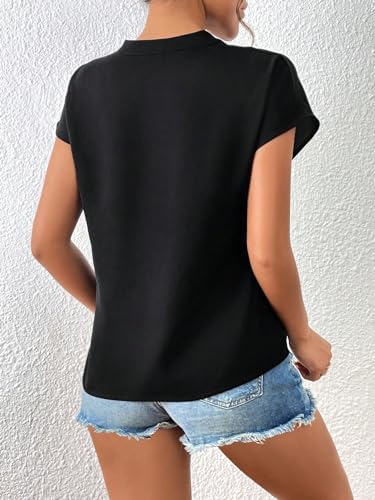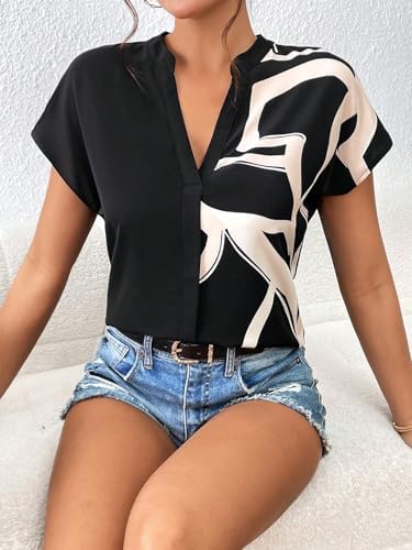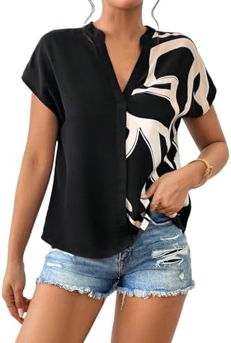 Discover the perfect blend of fashion and comfort with the GORGLITTER Women’s Graphic Print Notched V Neck Short Sleeve Casual Blouse. Crafted for everyday wear, this blouse features a flattering notched V-neck design paired with eye-catching graphic prints that elevate your casual wardrobe. Ideal for both relaxed outings and social gatherings, it offers a versatile look that pairs well with jeans, skirts, or shorts.