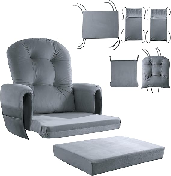 The HOMS 5-Piece Glider Rocker Replacement Cushions Set is designed to transform your rocking chair experience by providing plush support and ergonomic comfort. Crafted with soft velvet fabric and filled with high-resilience foam and microfiber, these cushions offer long-lasting softness that contours perfectly to your spine, hips, and ankles. Whether you’re reading, relaxing, or soothing your baby, this cushion set enhances your comfort during every glide.