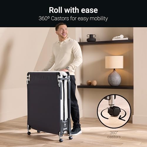 Equipped with 360-degree wheels, this bed is effortlessly mobile, allowing you to roll it out or hide it away with ease. The 8-point ground contact and J-GRIP anti-tilt legs provide unmatched stability, ensuring a secure and supportive sleeping surface every time. The Mono Tex platform base is stretch-resistant to guarantee long-lasting durability and a restful night’s sleep.