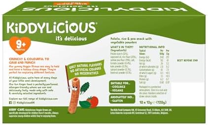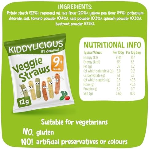 Serve Kiddylicious Veggie Straws as a quick snack between meals or as a fun, crunchy treat that helps develop your child’s motor skills and taste preferences. These straws make mealtime enjoyable and hassle-free, fitting perfectly into busy family lifestyles.