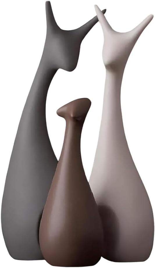 Discover the perfect blend of sophistication and natural beauty with the KOVEO Matte Finish Ceramic Deer Figures. This exquisite set of three abstract deer sculptures is crafted from high-quality ceramic, featuring a smooth matte brown finish that adds a refined touch to any room. Designed to complement various interior styles—be it modern, rustic, or eclectic—these figurines instantly elevate your living space with a subtle yet striking wilderness-inspired charm.