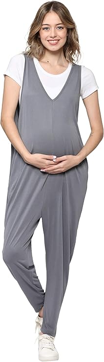 A comfortable, stylish maternity jumpsuit designed by LaClef for expecting mothers.