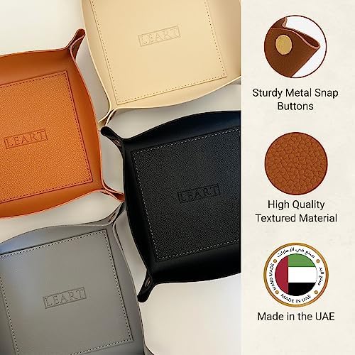 Experience the perfect blend of functionality and style with the LEART Small Compact Valet Tray. Crafted from premium materials and featuring superior craftsmanship, this valet tray is designed to last for years. Its sturdy snap buttons ensure the tray holds its shape whether you’re using it at home, in the office, or on the go.