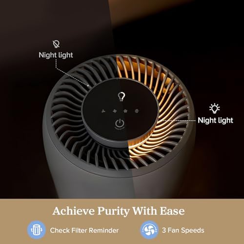 - Portable and versatile: Compact size fits seamlessly on desktops, countertops, or beside your bed for clean air wherever you go.