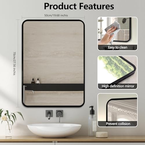 Upgrade your bathroom decor with the Moderntop 70×50cm Bathroom Wall Mirror featuring a sleek black aluminum alloy frame. This modern square mirror offers a large reflective surface that delivers clear, undistorted reflections, perfect for daily grooming. Its versatile design allows you to mount it horizontally or vertically, making it ideal for bathrooms of all sizes or even as an accent piece in bedrooms and hallways.