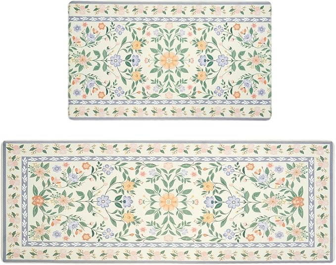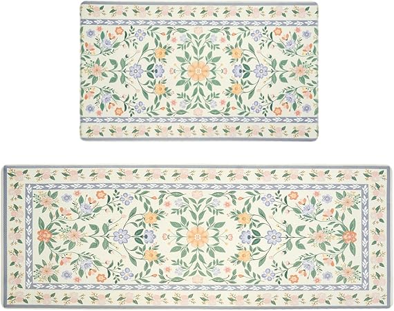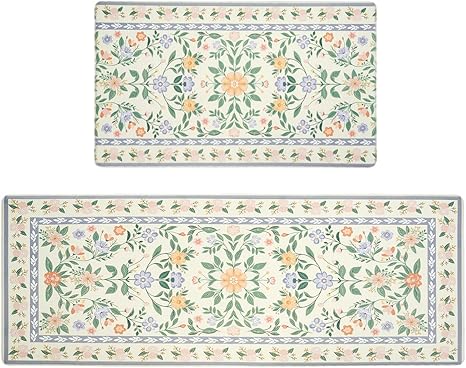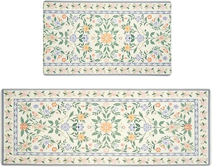 Upgrade your kitchen or laundry space with the MOSISO Kitchen Mats Set, featuring a charming countryside floral pattern in vibrant colors. This 2-piece set includes mats sized 18″ x 30″ and 47″ x 30″, perfect for placing in front of sinks, countertops, or entryways, blending functionality with elegant design to brighten any room.
