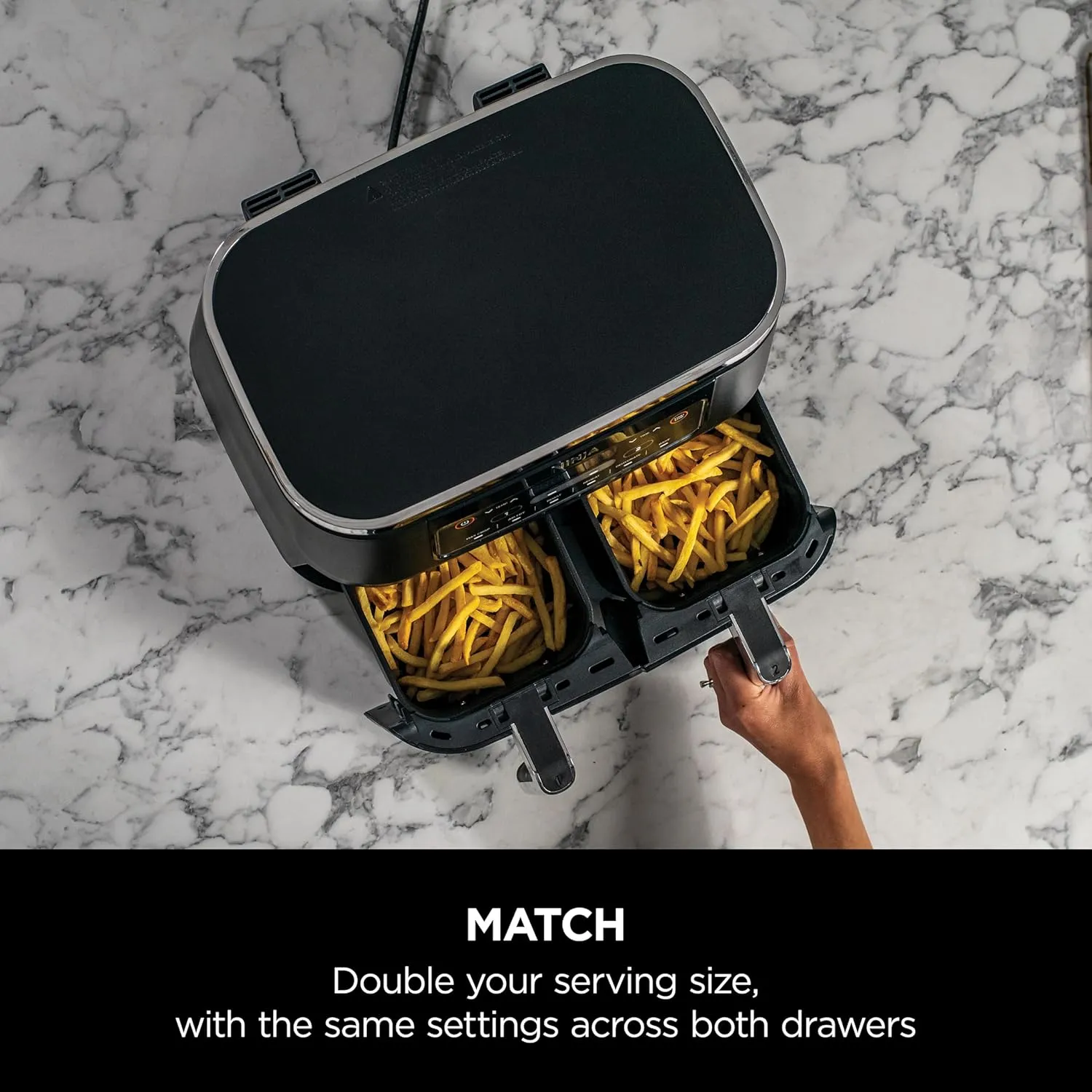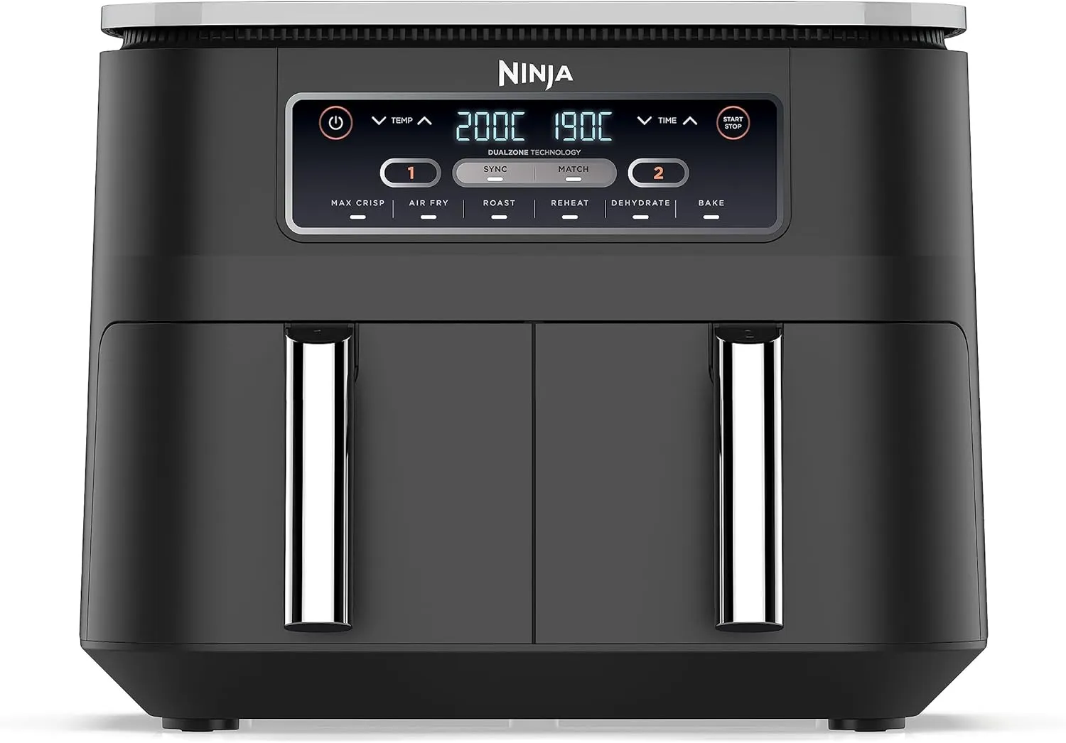The Ninja Foodi Dual Zone Digital Air Fryer (AF300ME) is designed to deliver perfectly cooked meals for families of 4-6 people. With a 7.6L capacity and 6 versatile cooking functions, this air fryer allows you to Air Fry, Max Crisp, Roast, Bake, Dehydrate, and more, all in one unit. The two independent drawers let you cook two different foods at the same time with separate temperature controls. Featuring non-stick, dishwasher-safe baskets for easy cleaning, this air fryer combines convenience with high performance. The sleek black design and 2-year warranty ensure durability and style for your kitchen.