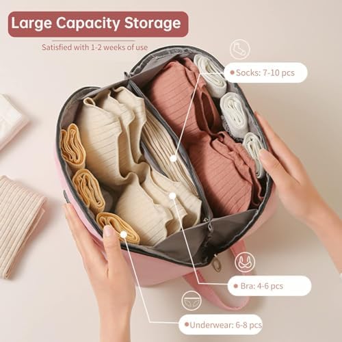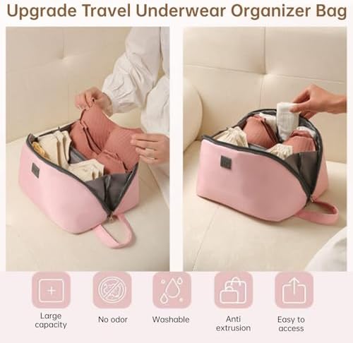 Experience superior organization and protection with the PGQIQGNM Travel Underwear Organizer Bag, crafted from durable Oxford cloth with a waterproof finish. This bag not only safeguards your delicate lingerie, bras, socks, and cosmetics but also maintains your privacy with its sturdy build and discreet design, making it a must-have travel companion.