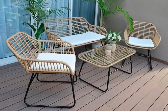 • Includes 2 rattan chairs, 1 spacious sofa, and 1 elegant coffee table.