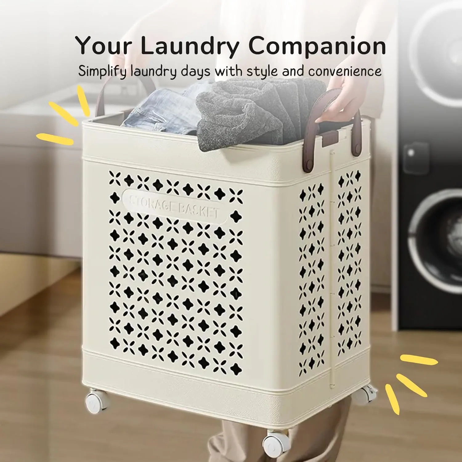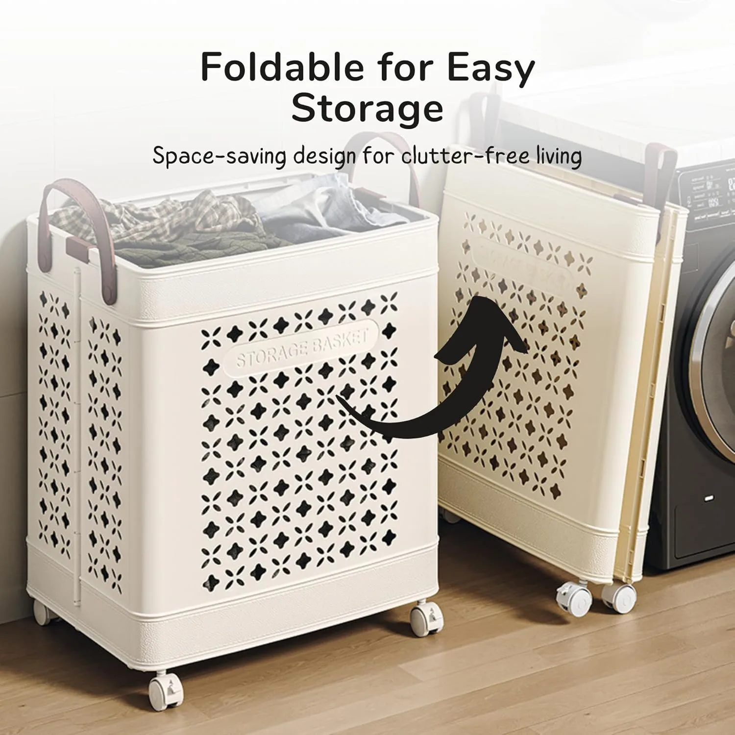 Rolling Laundry Basket Foldable Space Saver