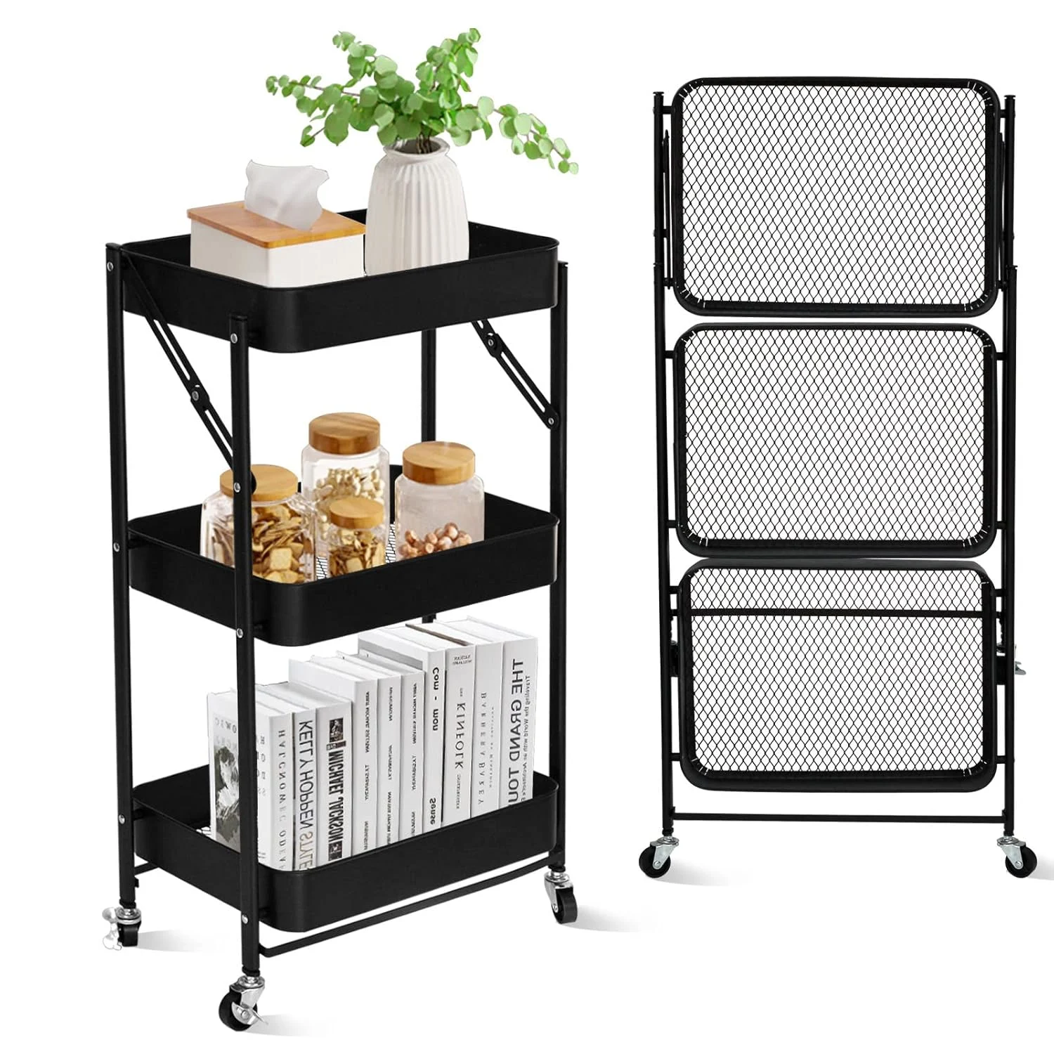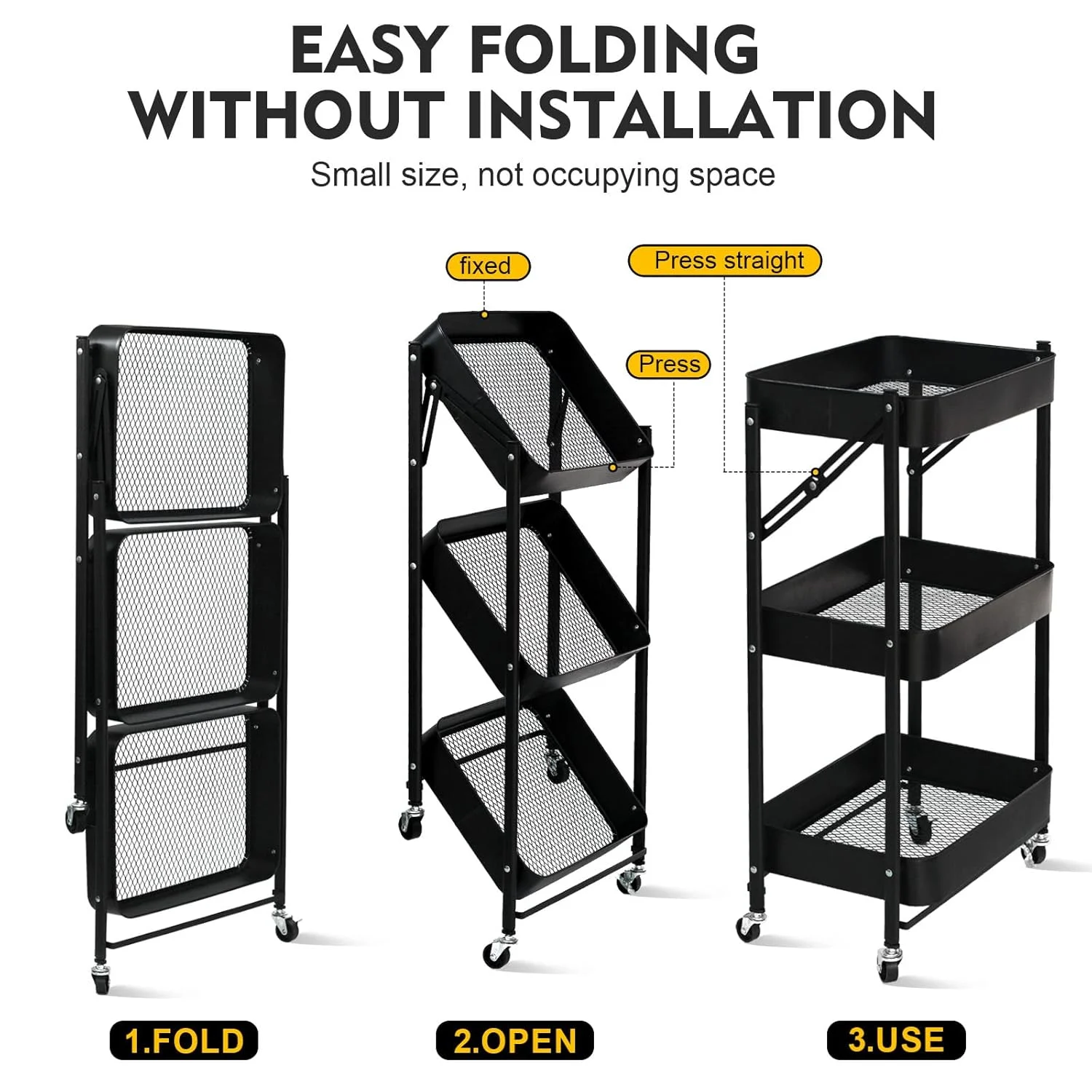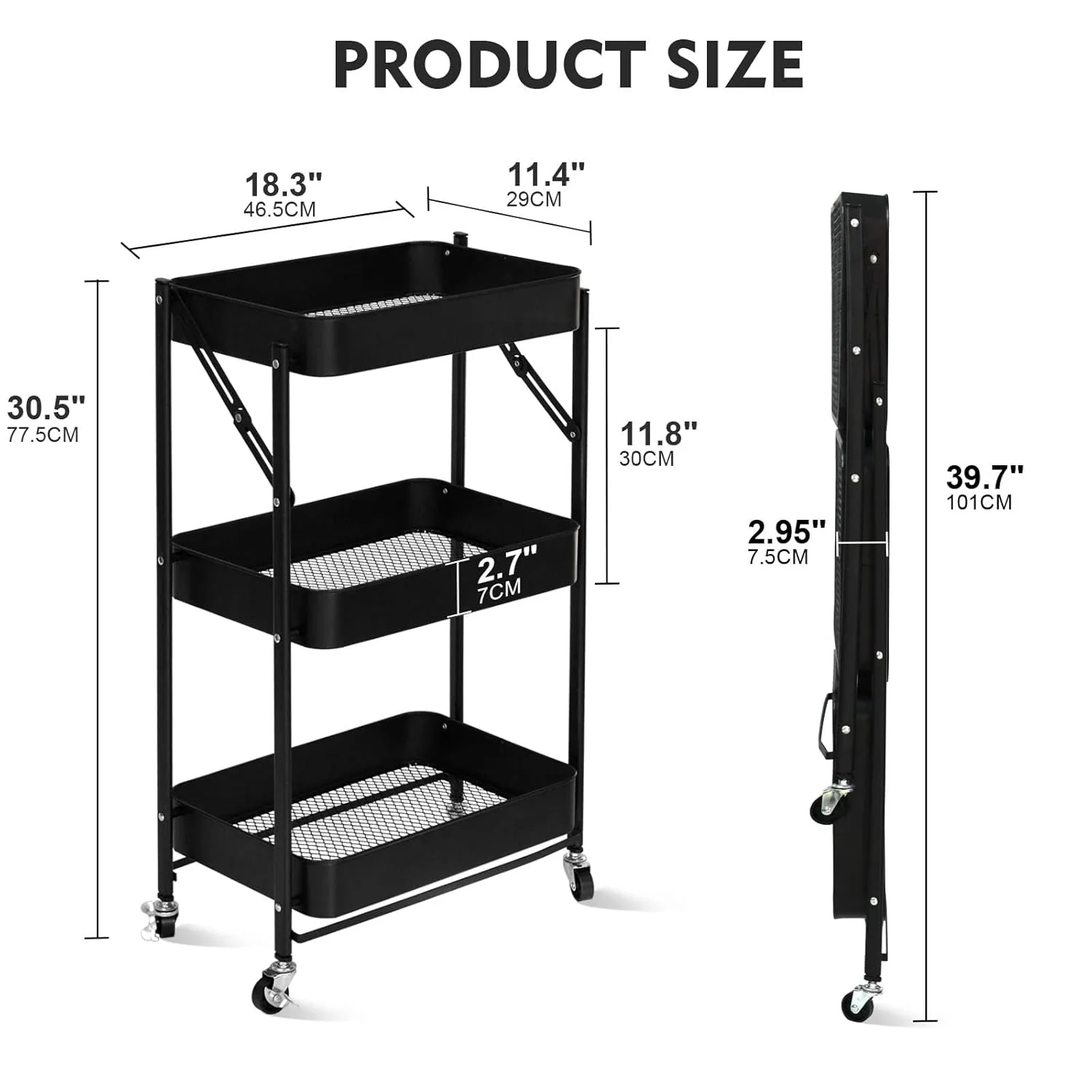 This rolling utility cart provides versatile storage for any room. Easy to assemble, it features 3 tiers, 360° wheels (2 lockable), and a handle for easy maneuvering. Perfect for kitchens, bathrooms, offices, and more!