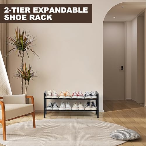 The SALADAYS 2-Tier Expandable Shoe Rack offers a flexible solution for organizing your footwear with ease. Its adjustable length expands up to 29.9 inch, accommodating up to 8 pairs of adult shoes, making it ideal for tight spaces like closets, entryways, garages, or bedrooms. This versatile rack helps keep your area tidy and clutter-free.