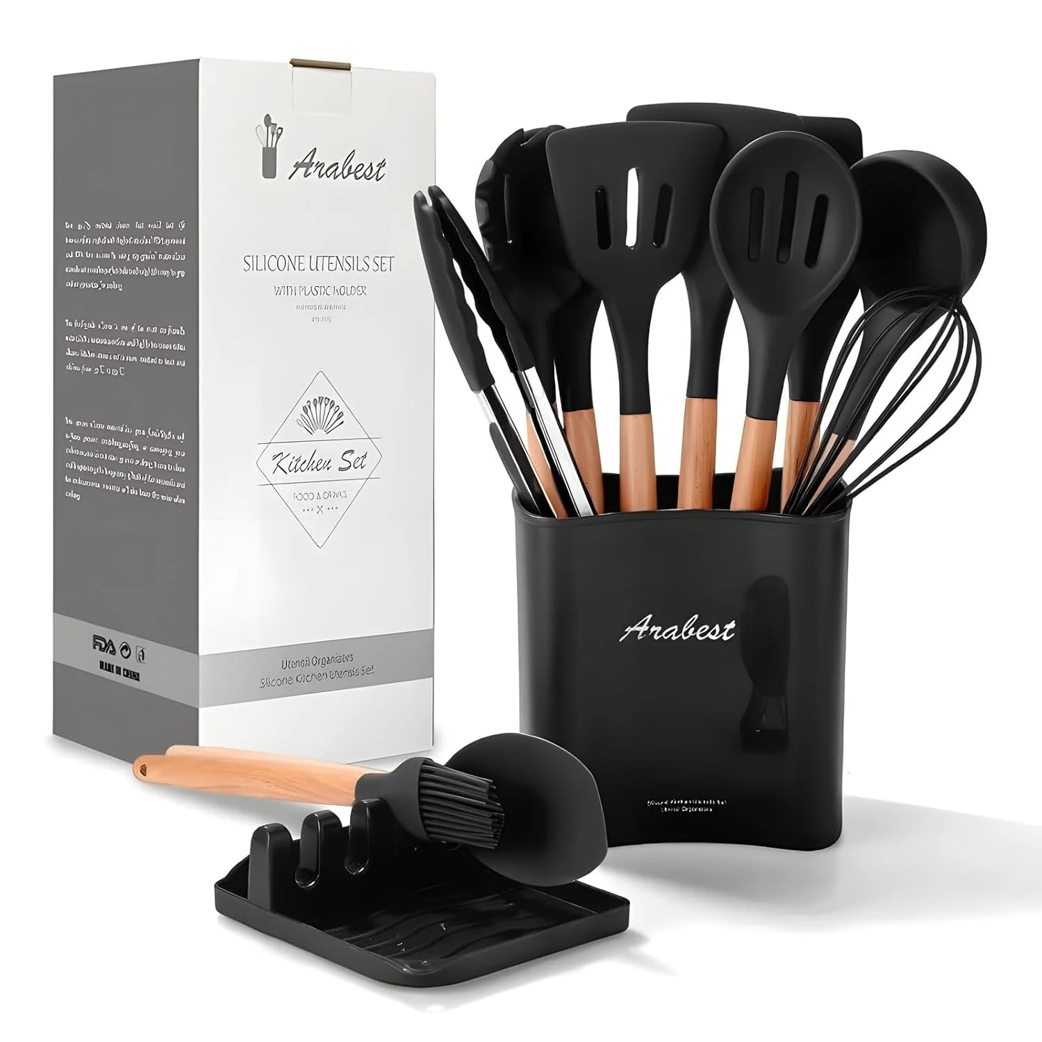 Upgrade your kitchen with our premium 13-piece Silicone Cooking Utensil Set! This comprehensive set includes everything you need for cooking, baking, and serving. Crafted with high-quality, food-grade silicone, these utensils are heat resistant up to 446°F (230°C) and are FDA-approved and BPA-free, ensuring safe and healthy cooking. Unlike plastic utensils, our silicone won’t melt, bend, break, or rust, guaranteeing long-lasting durability. The flexible silicone heads are gentle on your cookware, protecting your nonstick pots and pans from scratches and damage.