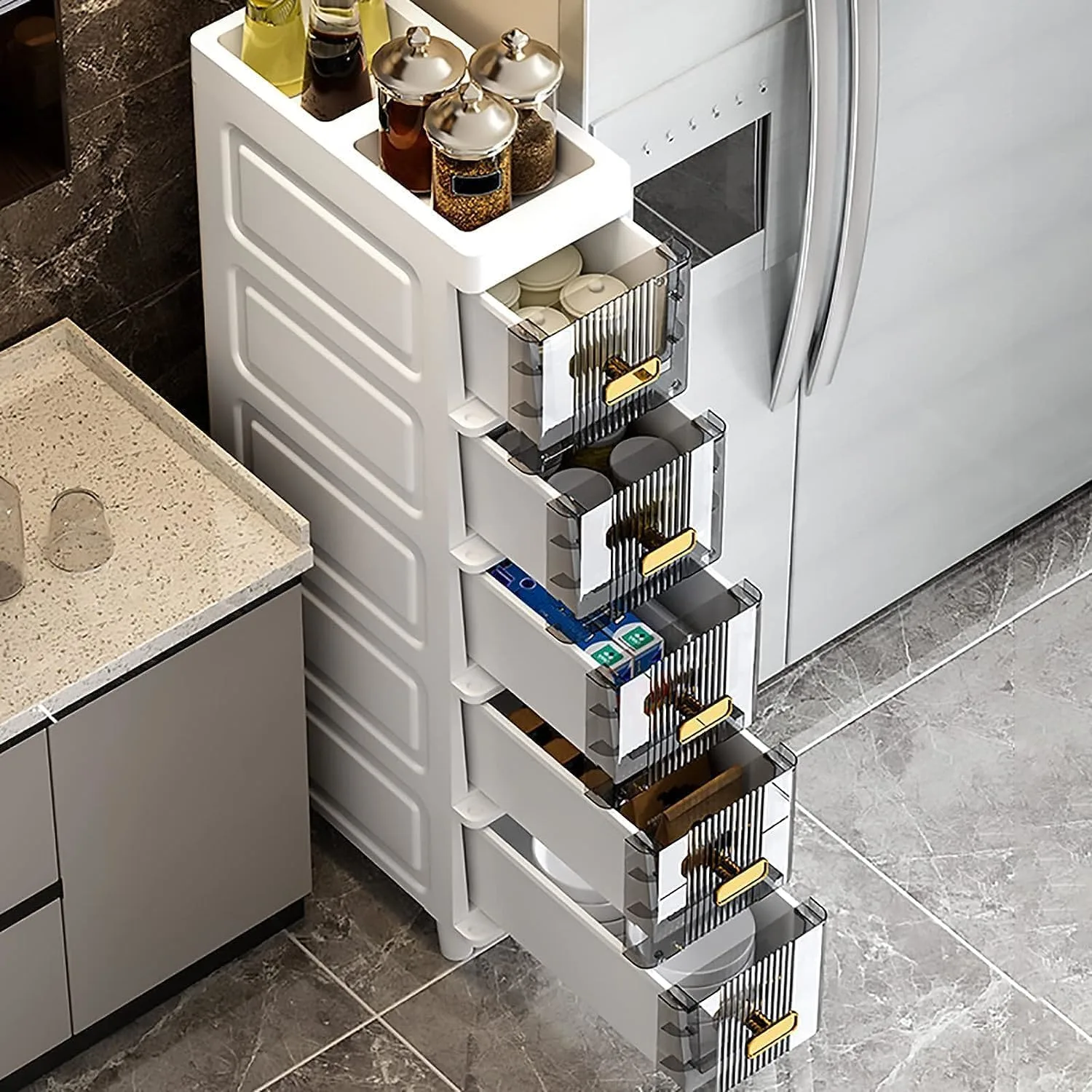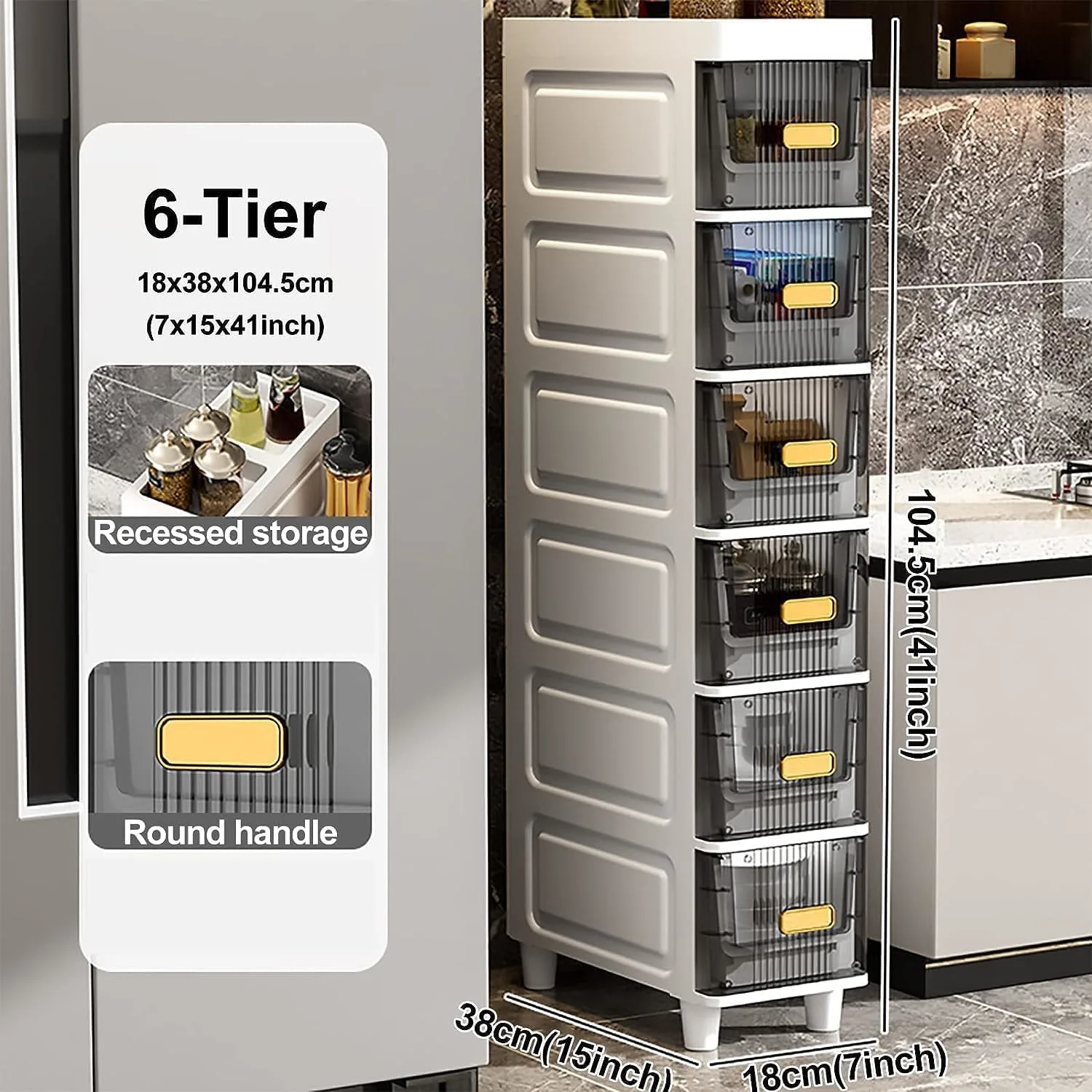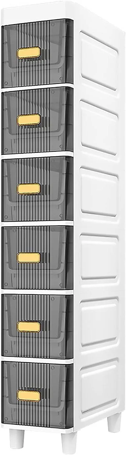 Maximize your bathroom storage with this Slim Bathroom Storage Cabinet! Its narrow design fits perfectly in tight spaces, making it ideal for corners or next to the toilet. Don’t let limited space limit your organization! This cabinet boasts a surprising amount of storage capacity despite its compact footprint (18*38*104.5cm). Constructed from upgraded, thickened PP material, this sturdy tower is built to last. Each drawer can handle up to 10 kilograms, providing ample support for toiletries, towels, and other bathroom essentials. The floor-standing, freestanding design enhances stability, ensuring the cabinet remains upright and secure. Beyond the bathroom, this versatile organizer is suitable for kitchens, bedrooms, and other areas in your home. Simplify your life and declutter your space with this multi-functional storage solution. The translucent drawer design allows for quick and easy identification of contents, while the raised bottom drawer provides ample space for larger items. Easy to assemble with included instructions, you can quickly create additional storage in any room. The waterproof PP material makes it ideal for humid environments, and the lightweight design allows for easy relocation. Say goodbye to cluttered countertops and hello to an organized and efficient living space!