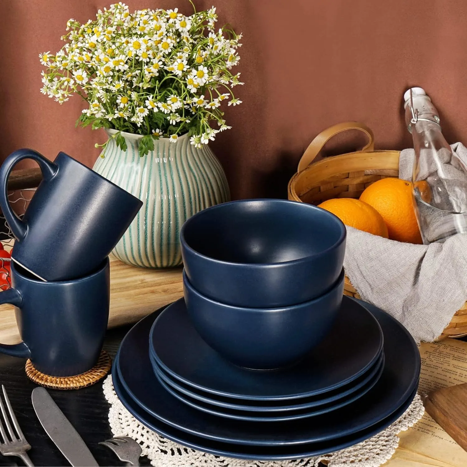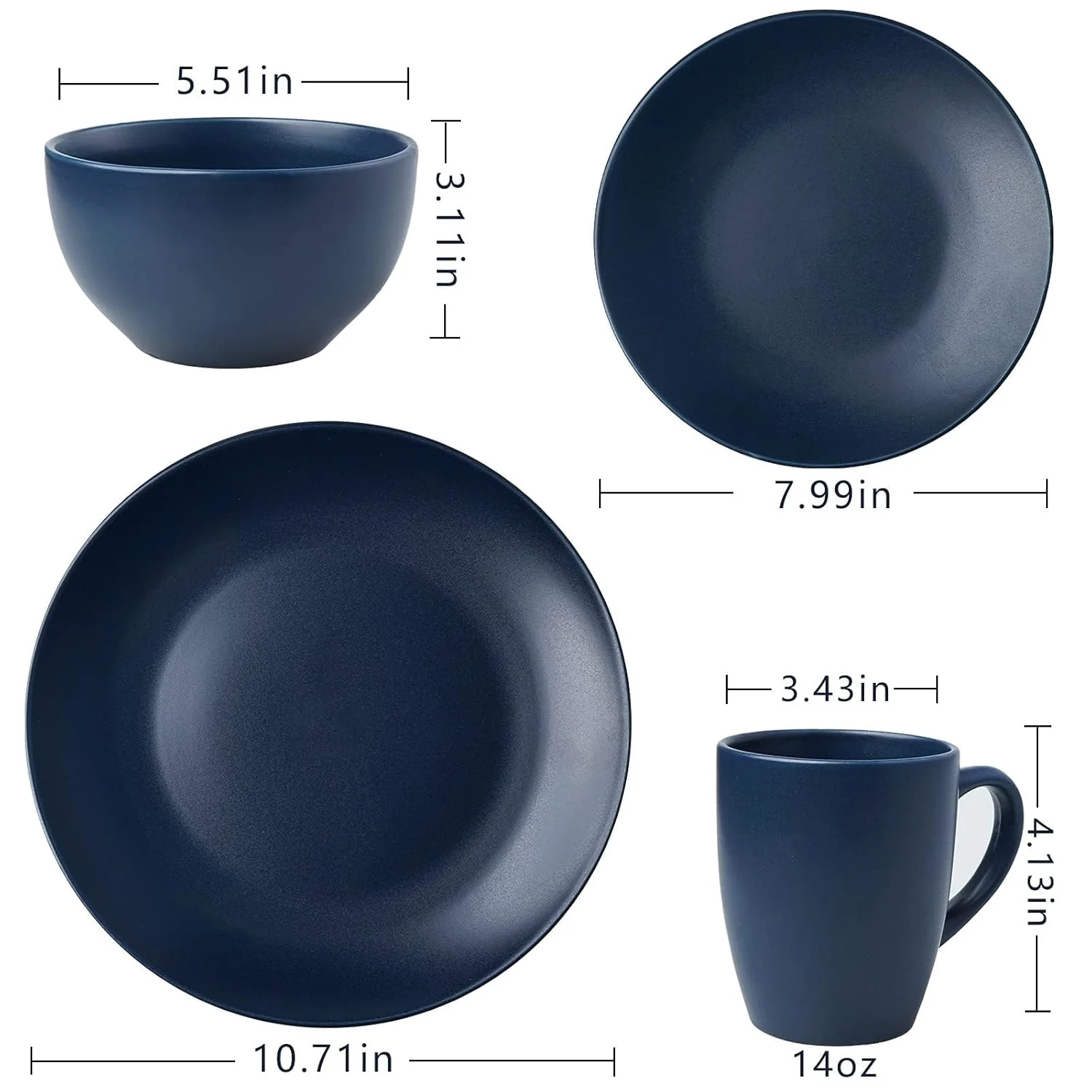Stoneware Dinnerware Set for 4, Navy Blue