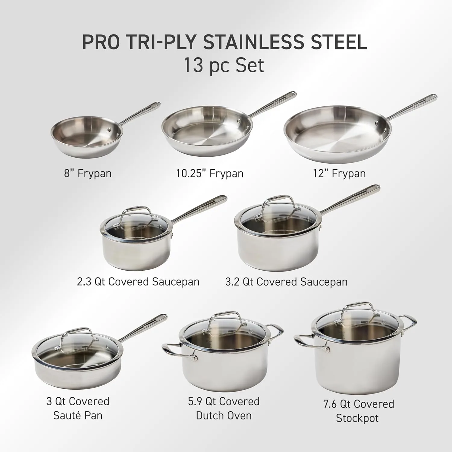 • Includes 8-inch, 10.5-inch, and 12-inch frypans.