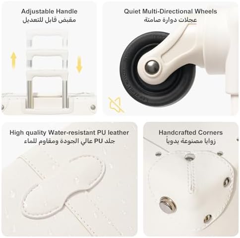 The urecity vintage suitcase offers spacious interiors framed by a wide aluminum structure, providing ample room for all your essentials. It includes a semi-closed organizer for added privacy and a detachable organizer compartment to customize your packing needs. Maneuver your luggage effortlessly using the strong three-position telescopic handle combined with smooth 360-degree spinner wheels that glide quietly through busy airports or city streets. This set also comes with a clear protective cover to shield your luggage from dust, water, and scratches while allowing easy identification on the go.