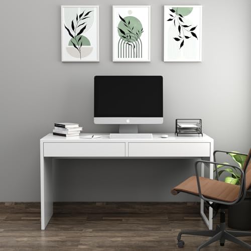 This modern executive workstation features a thick tabletop with an integrated grommet hole designed for easy cable management, keeping your workspace tidy and organized. The two spacious drawers provide practical storage for your office essentials, allowing you to maintain a clutter-free environment. Whether used as a computer desk, laptop table, or study table, it adapts seamlessly to home offices, study rooms, or professional workspaces. Easy DIY assembly with clear instructions makes setup hassle-free.