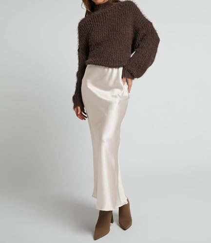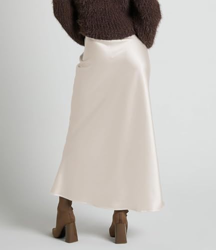Elegant High-Waist Silk Maxi Skirt for Spring and Summer